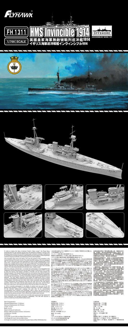 Flyhawk FH1311 1/700 HMS Invincible 1914 Plastic Model Kit