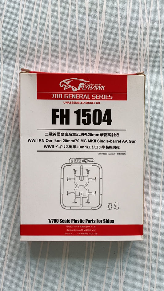 Flyhawk FH1504 1/700 WWII RN Oerlikon 20mm/70 MG MKII Single-barrel AA GUN Plastic Model Kit