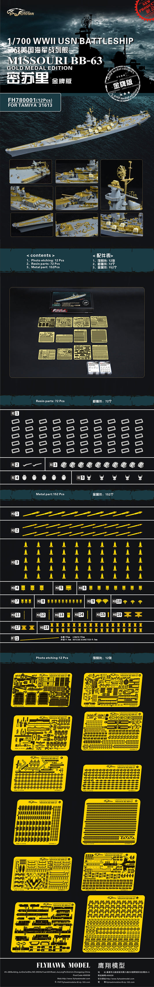 Flyhawk FH780001 1/700 WW II USS Battleship Missouri For Tamiya 31613