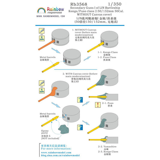 Rainbow 3568 Secondary Guns I of IJN Battleship Kongo/Fuso class (150/152mm 50Cal. WITHOUT Canvas cover)