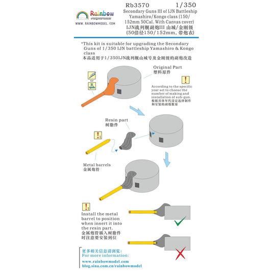 Rainbow 3570 Secondary Guns III of IJN Battleship Yamashiro/Kongo class (150/152mm 50Cal. With Canvas cover)