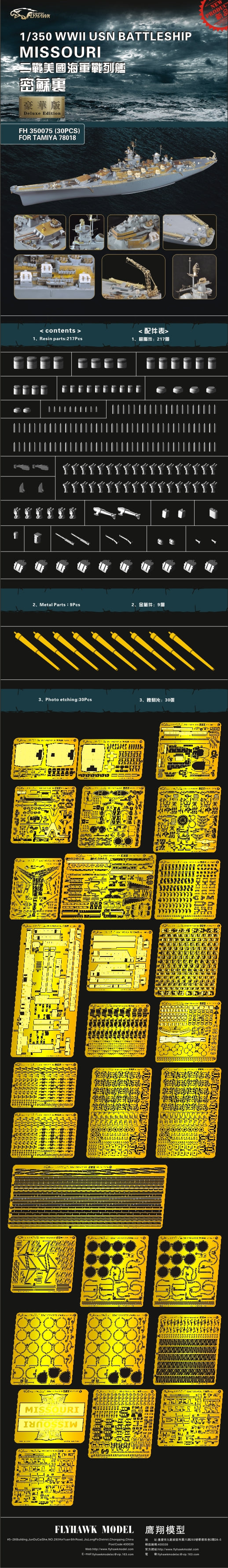 Flyhawk FH350075 1/350 WWII USN Battleship Missouri For TAMIYA 78018