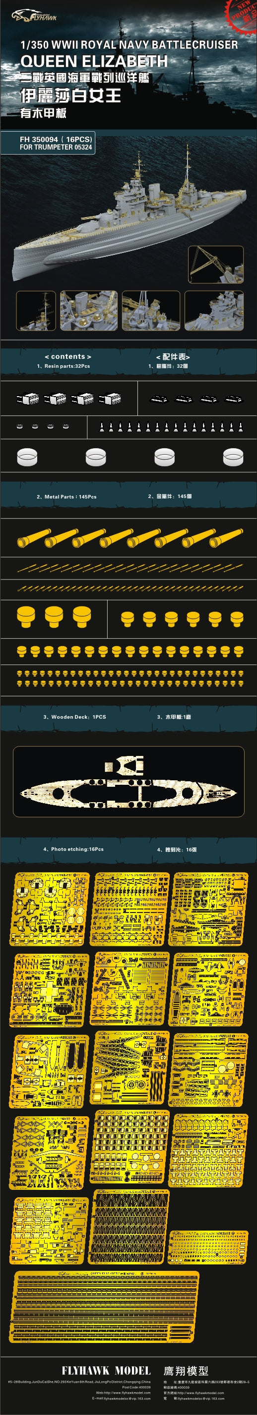Flyhawk FH350093 1/350 WWII RN BattleShip Queen Elizabeth For Trumpeter 05324