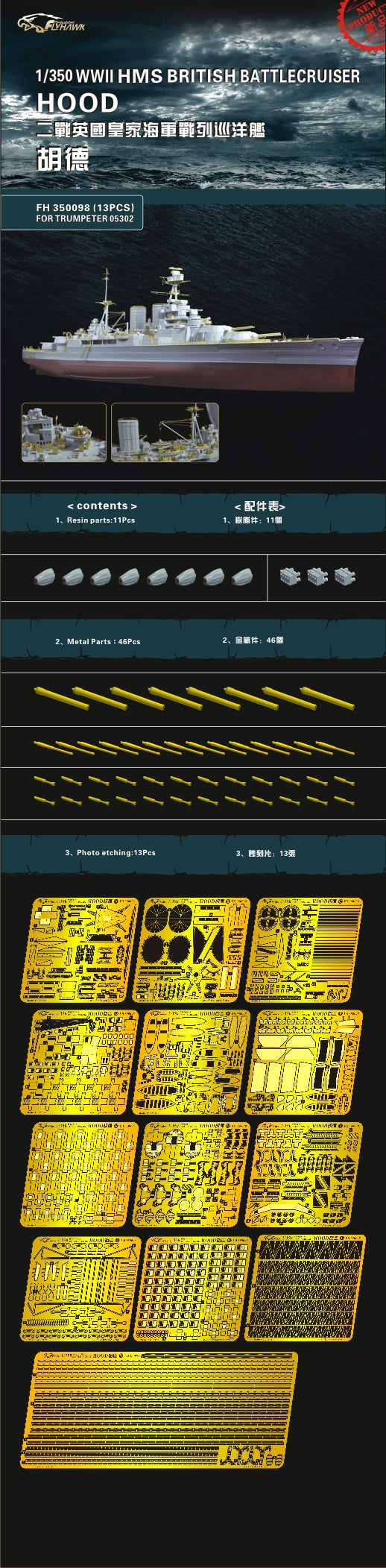 Flyhawk FH350099 1/350 HMS Hood [This product must be used with FH350098] For Trumpeter