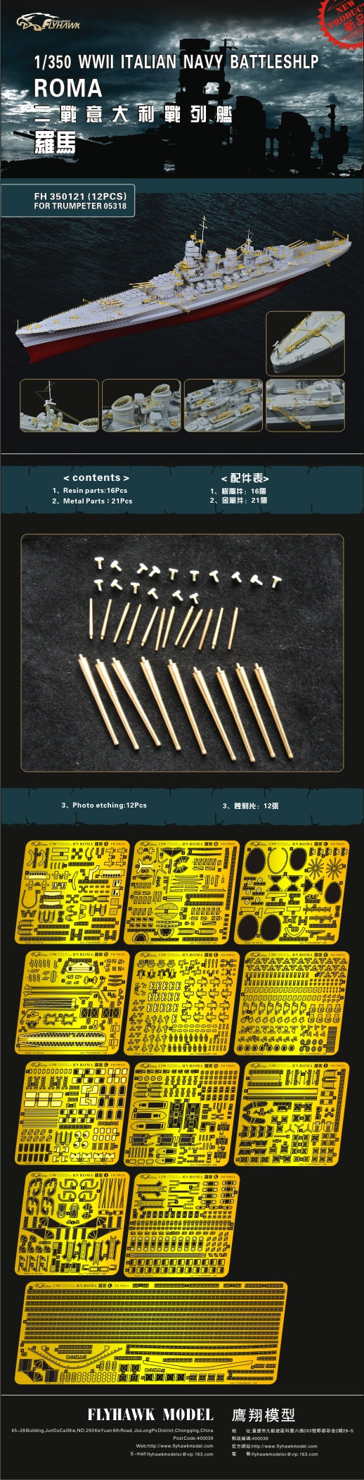 Flyhawk FH350121 1/350 WWII Italian Navy Battleship Roma For Trumpeter 05318