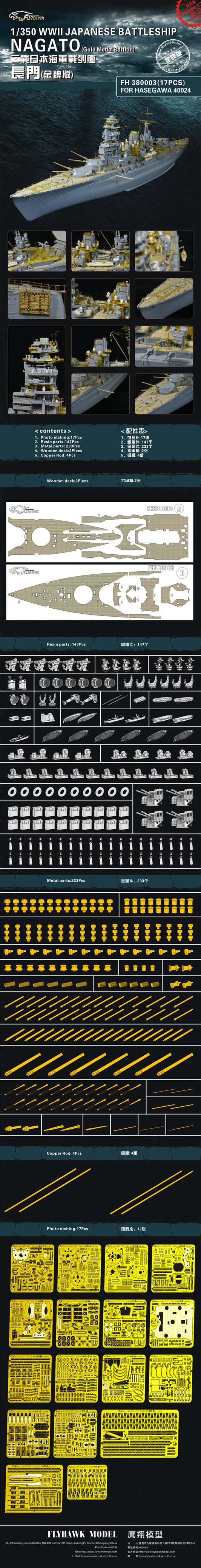 Flyhawk FH380003 1/350 WWII IJN BATTLESHIP NAGATO Golden Medal Edition FOR HASEGAWA 40024