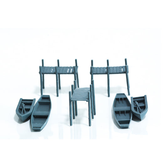 Yao's Studio LYTS038 Part Of The Dock Boats And Canoes Scene Of The Railway Train Layout.