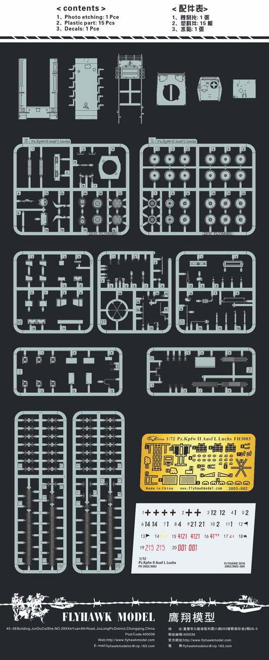 Flyhawk FH3003 1/72 Pz.Kpfw II Ausf L LUCHS w/Zusatzpanzerung Plastic Model Kit