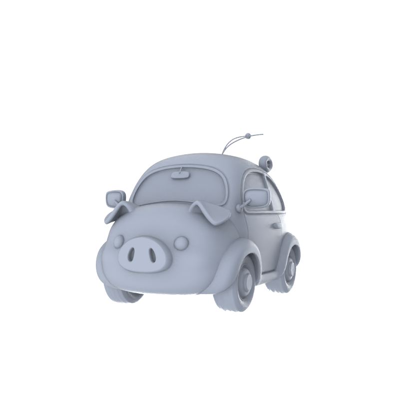 Yao's Studio LYTA250 Unpainted Creative Zodiac Pig Car Model, Cartoon Animal Vehicle, Diorama Scene Prop, Miniature White Blank Kit for Painting