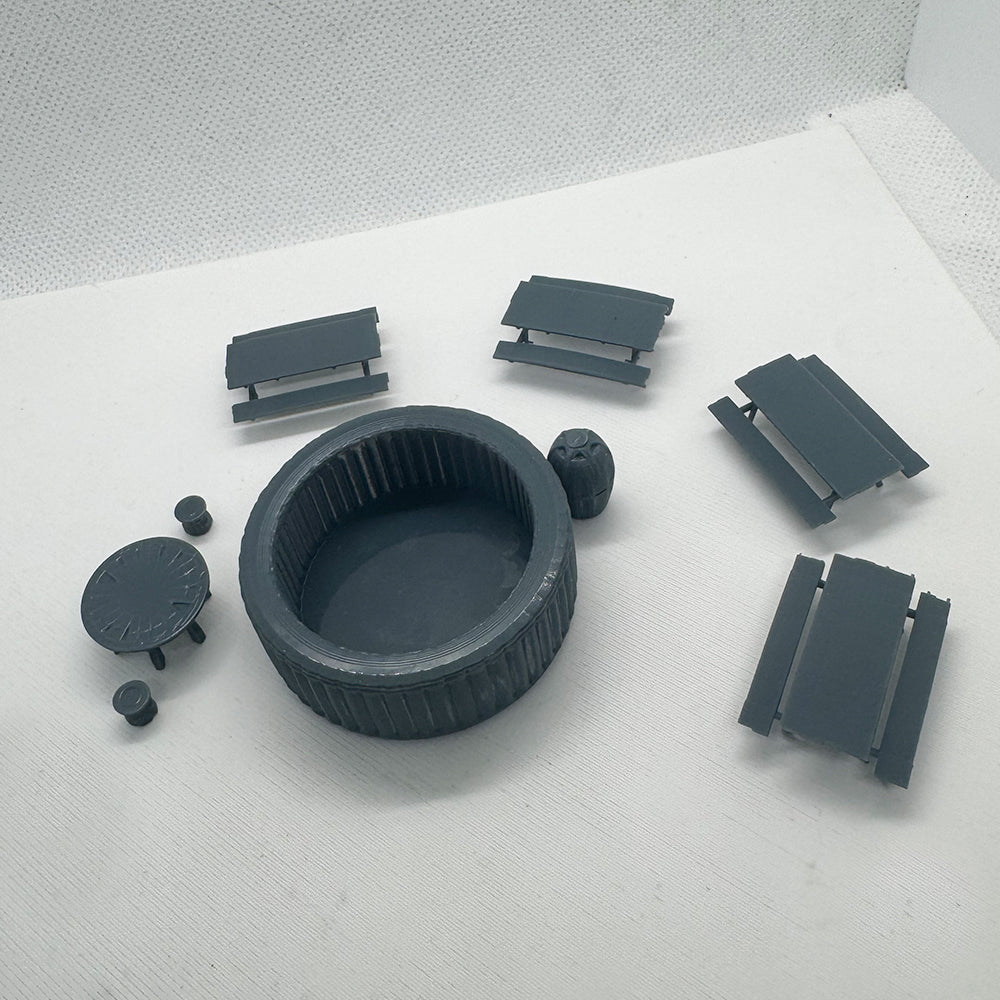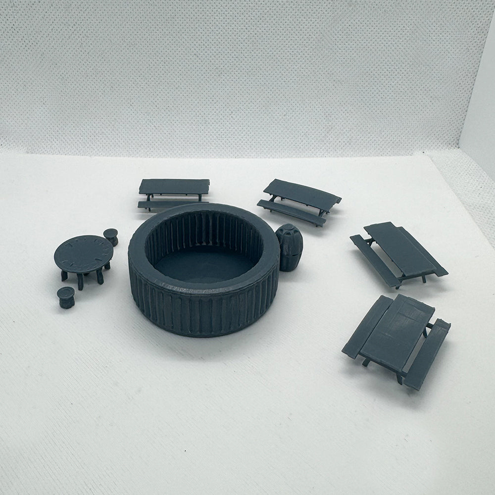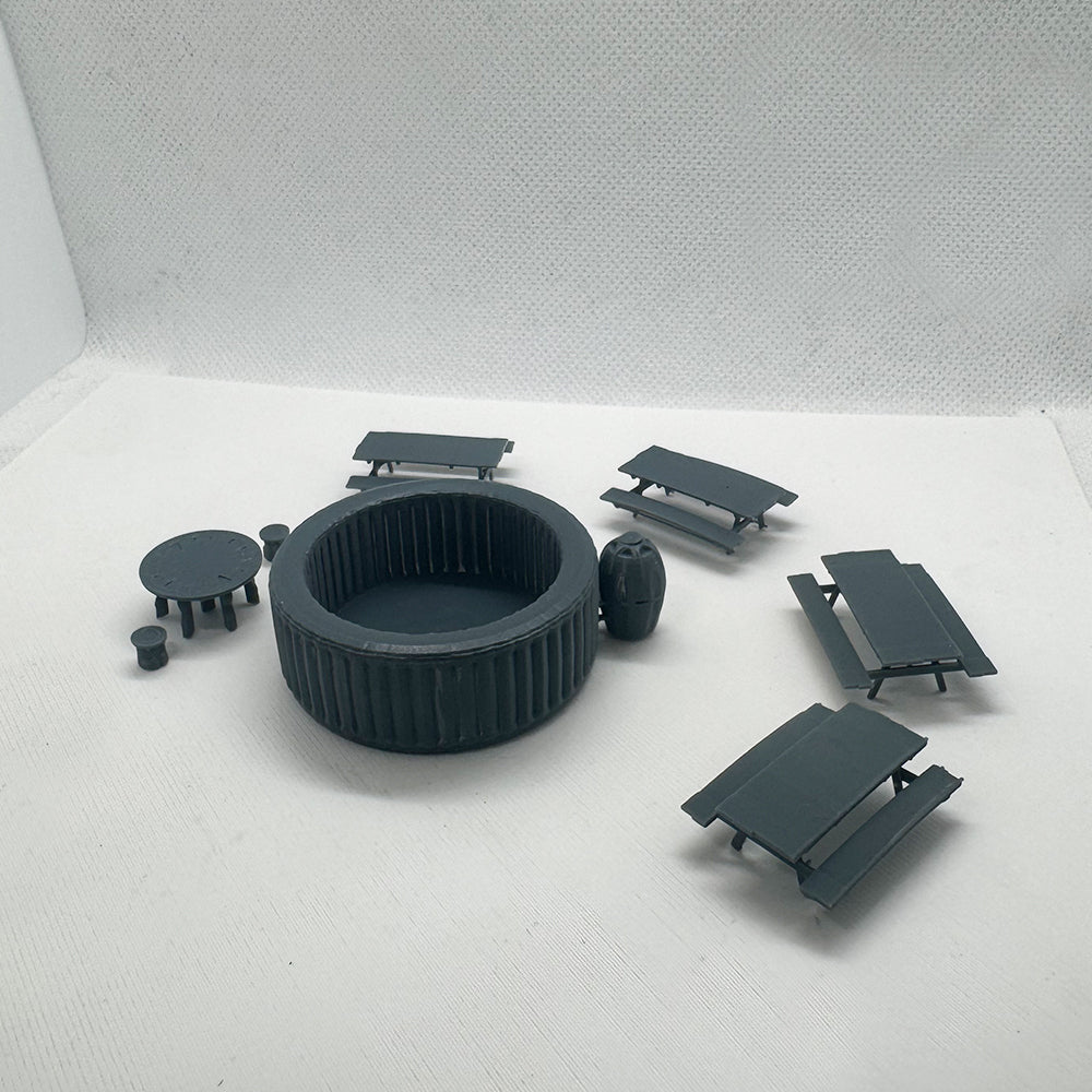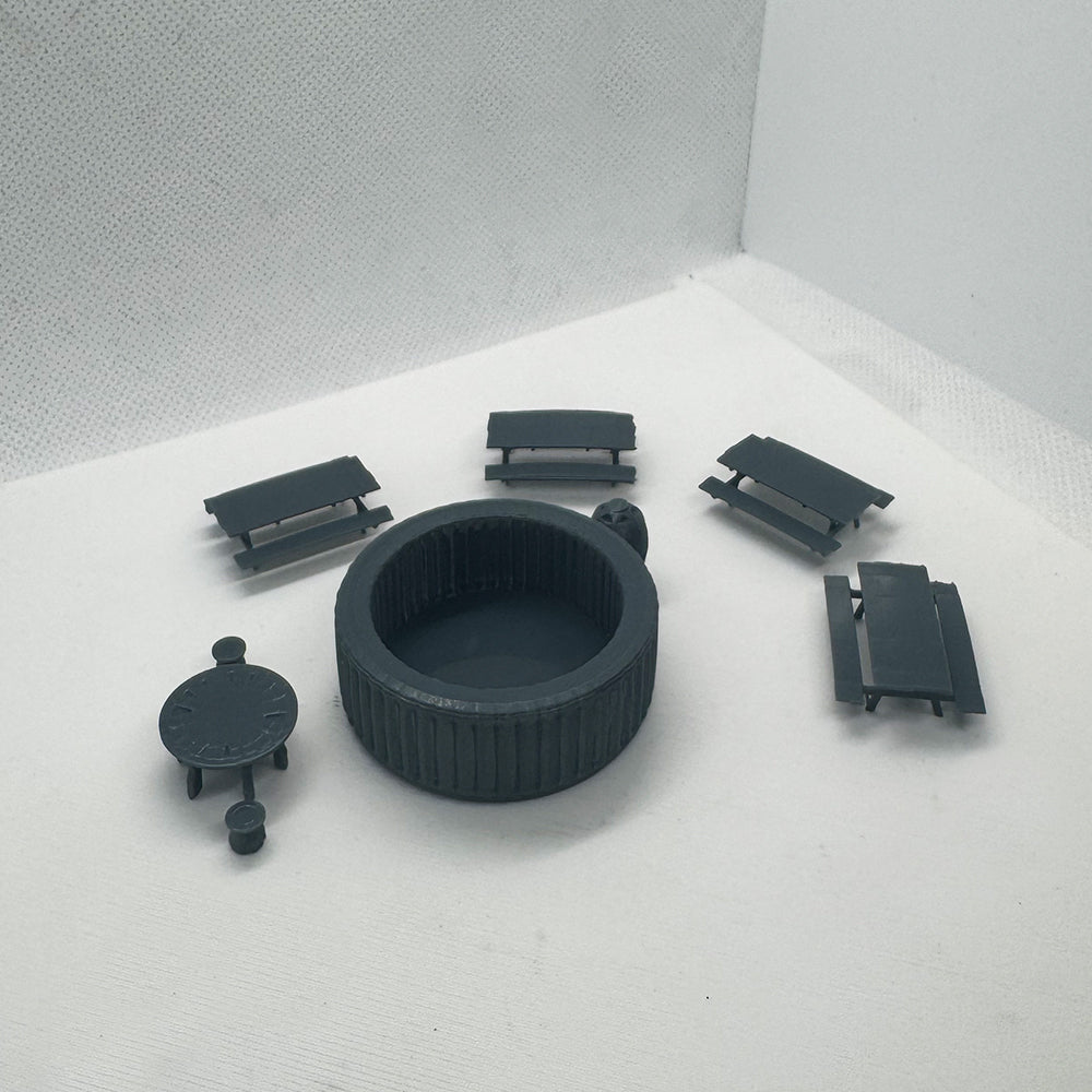 Yao's Studio LYTS065 Diorama 3D Railway Scene Swimming Pool Picnic Table Outdoor Table And Chairs